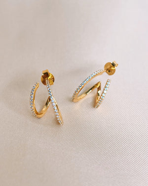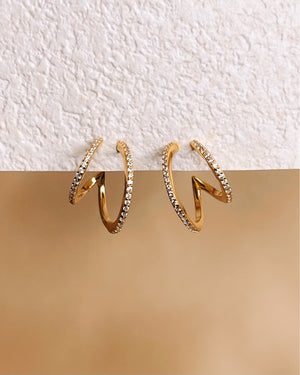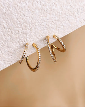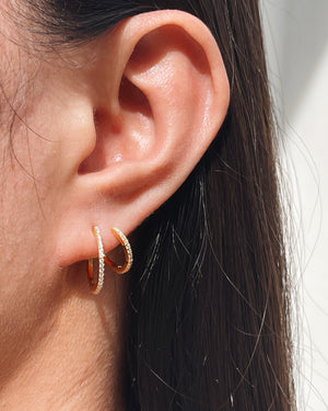 Anna Zircon Paved Double Layer Pseudo Stack illusion Huggie Hoop Earrings