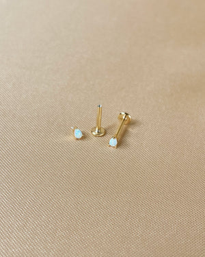 Arlette Opal Gold Flat Back Internally Threaded Labret Ear Piercing Studs