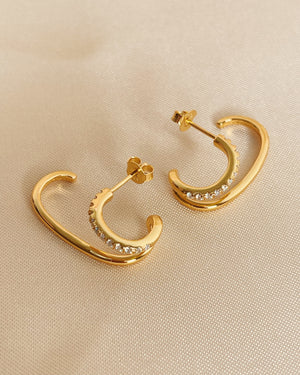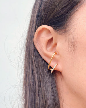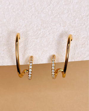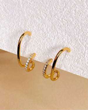Bridget Half Zircon Paved Double Layer Pseudo Stack illusion Huggie Hoop Earrings