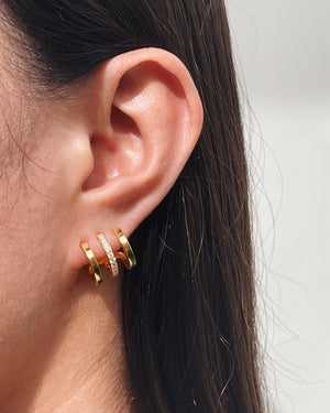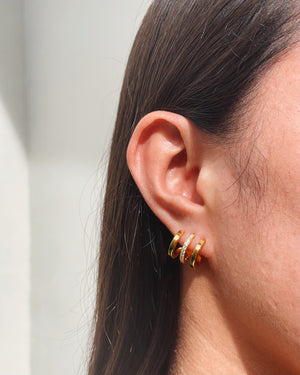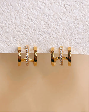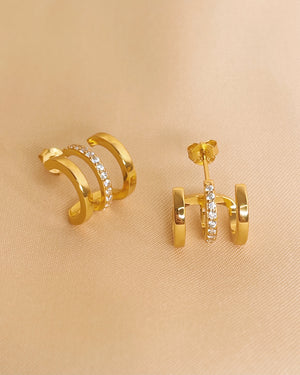 Aubrey 1/3 Zircon Paved Triple Layer Pseudo Stack illusion Huggie Hoop Earrings