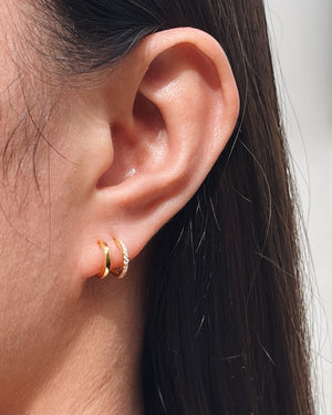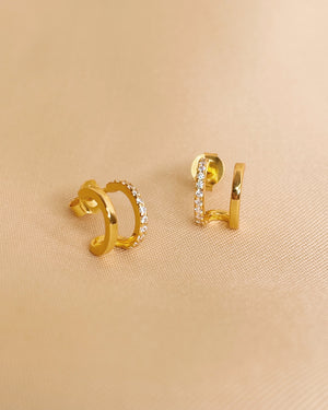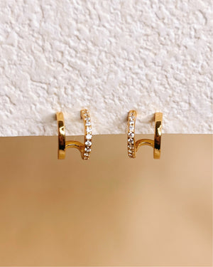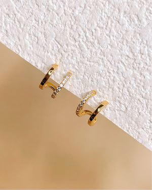 Beatrice Half Zircon Paved Double Layer Pseudo Stack illusion Huggie Hoop Earrings