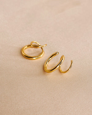 Theodora Double Layer Pseudo Stack illusion Huggie Hoop Spiral Earrings